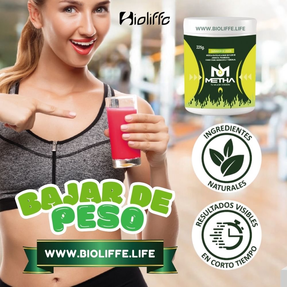 Transforma tu cuerpo con METHA, el quemador de grasa de Bioliffe. Con METHA tienes el camino hacia tu mejor versión. Desata tu potencial con ingredientes poderosos como L-Carnitina, flor de jamaica, toronja, té verde, y garcinia. Acelera tu metabolismo, quema calorías incluso en reposo, y pierde peso con mayor rapidez. ¡Metha te lleva hacia una vida más saludable y enérgica!